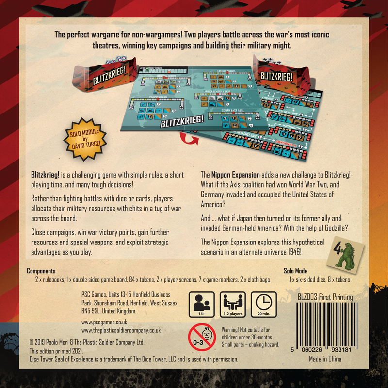 The entire Second World War condensed into a fast, tense, 20-minute tug-of-war. Place your forces across multiple theaters and outmaneuver your opponent in this acclaimed 2-player strategy game.